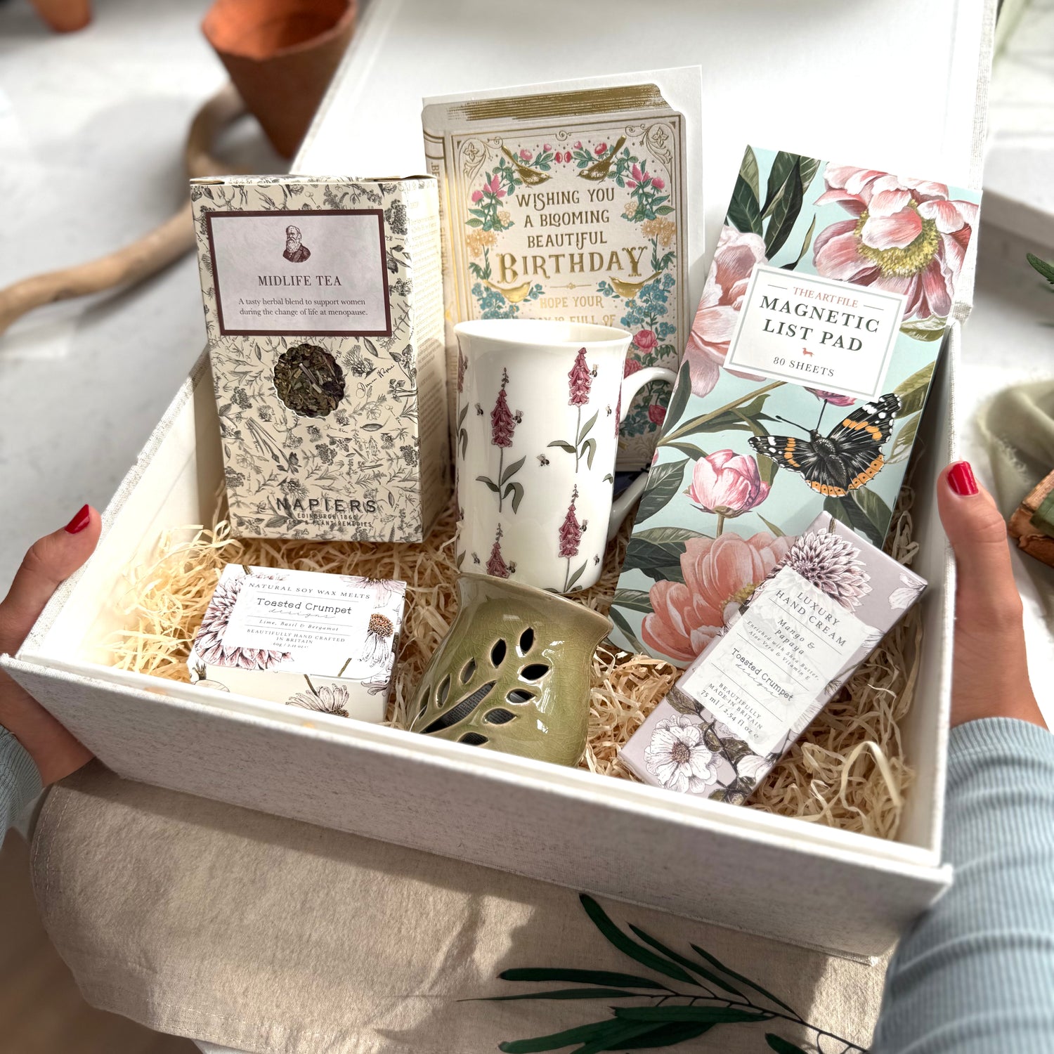 Create a personalised gift with candles, journals, teas, crystals and more – packaged in our signature sage linen box. Perfect for when you want to curate something unique.