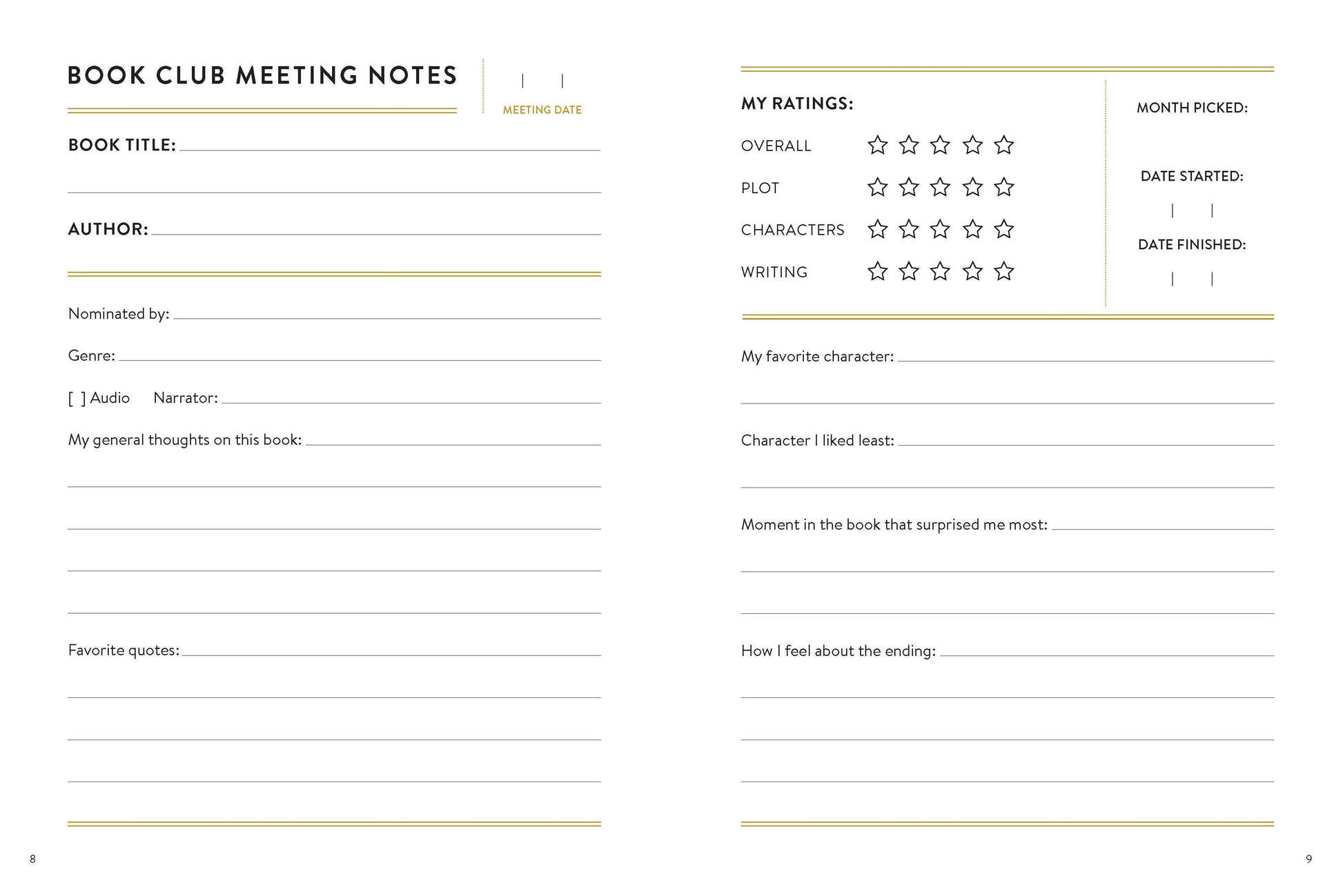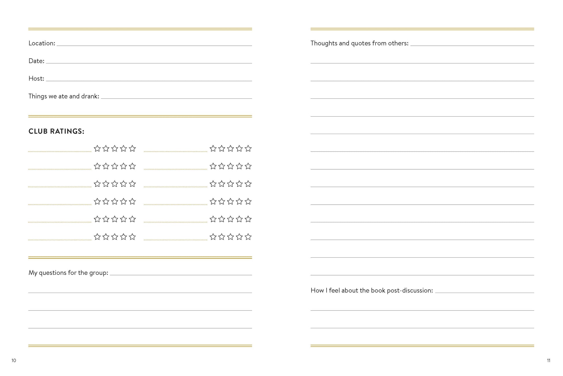 With generous pages of book club meeting notes, this journal will help you track event dates and everything about meetings, including: