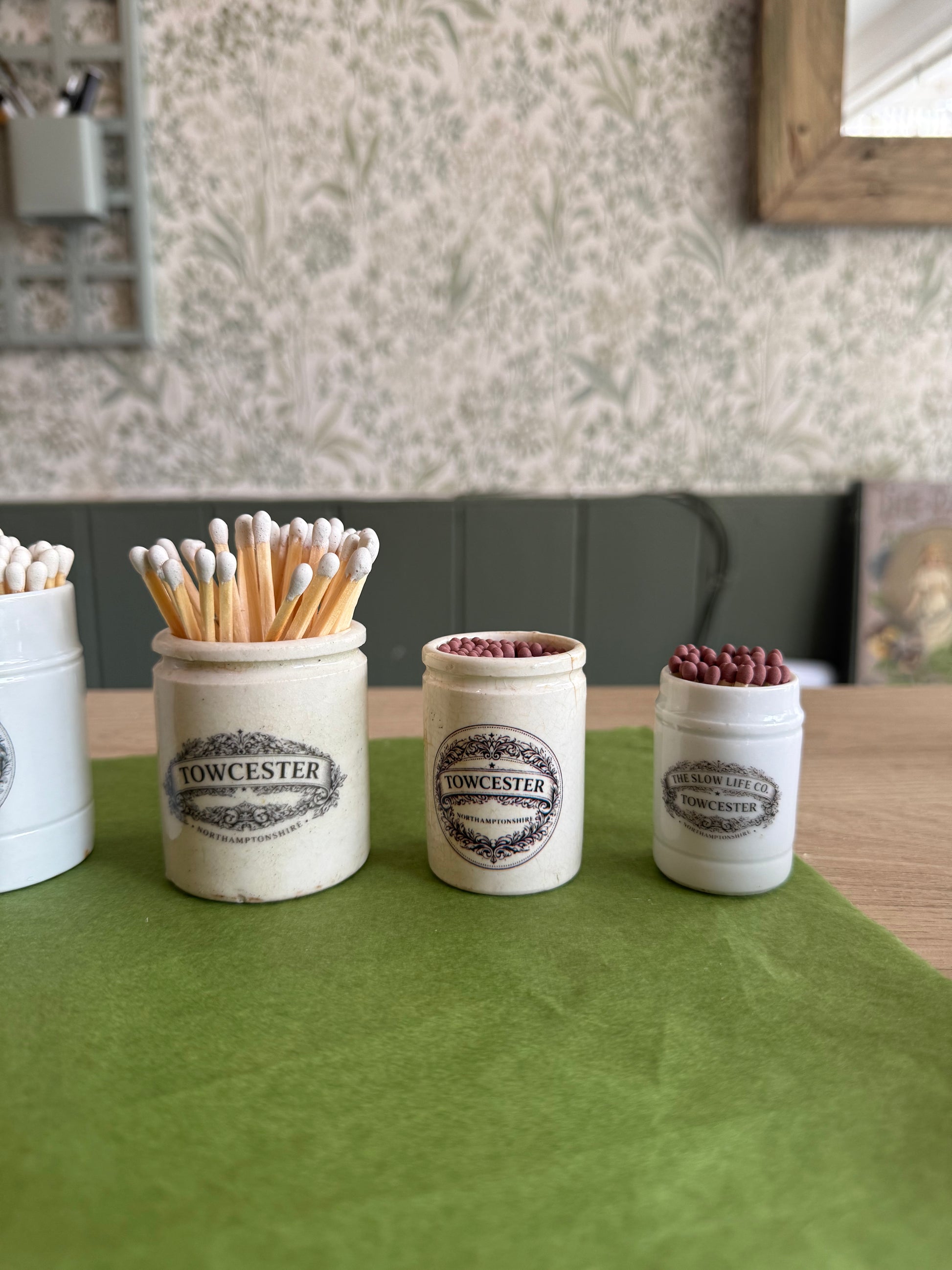 Beautiful old Victorian pots with a lot of history, repurposed. Finished with a vintage-inspired Towcester label designed by Cecile from The Slow Life, it brings a subtle sense of place and story to your shelves.